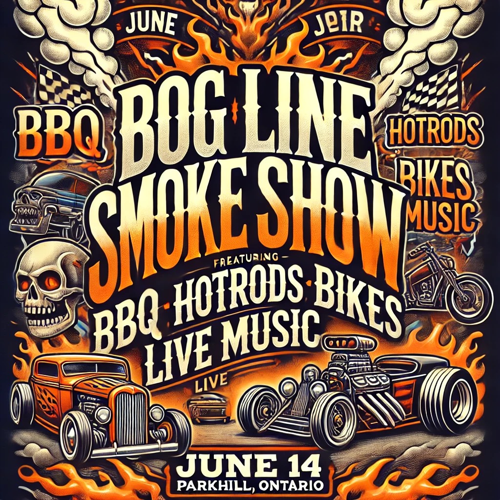 FM96 invites you to the First Annual Bog Line Smoke Show at the Parkhill Fairgrounds, June 14th, presented by Widder station Golf, Grill and Tap House. With a barbeque competition, live music, hot rod show, and more!