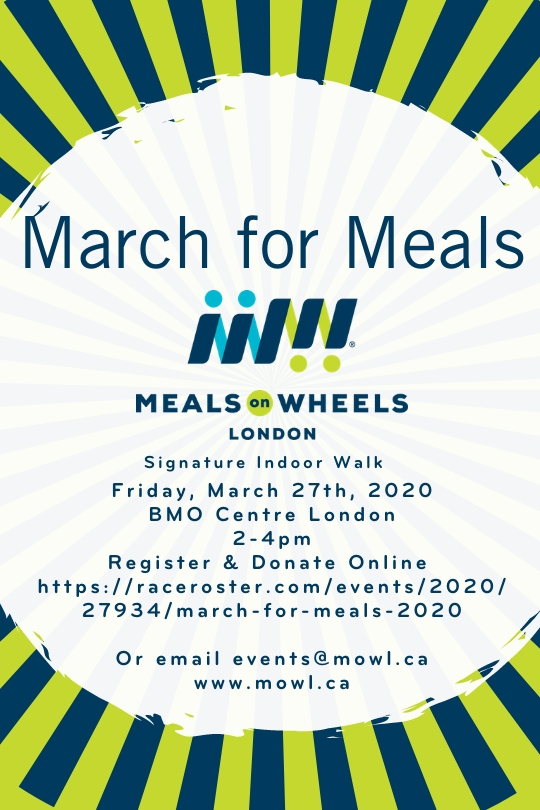 March For Meals Where BMO Centre , 295 Rectory Street, London , Ontario, Canada Map When Mar 27/20 02:00 PM - Mar 27/20 04:00 PM Age All