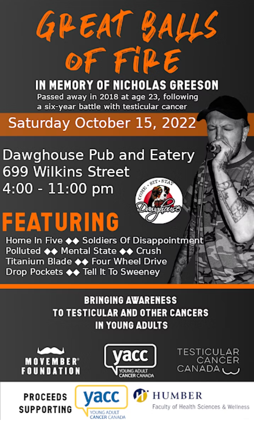 Great Balls of Fire is an annual musical fundraiser in honour of Nicholas Greeson, who passed away at 23 in 2018 after a brave six-year battle with testicular cancer.