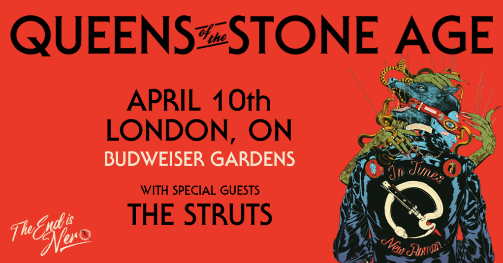 December 5, 2023 (Toronto, ON) – Queens of the Stone Age have announced a run of Canadian dates to continue their epic worldwide The End Is Nero tour. Currently kicking off another round of US shows to close out 2023 and looking forward to a whirlwind 2024, the band will resume its North American onslaught beginning April 1 at Calgary’s Scotiabank Saddledome. British rock band The Struts will join as support across the country. The End Is Nero tour welcomes the obscene and the clean, the outcasts and the weirdos, and anyone and everyone in between, this is where you belong. Leave your judgment at the door, bring anything and everything else.