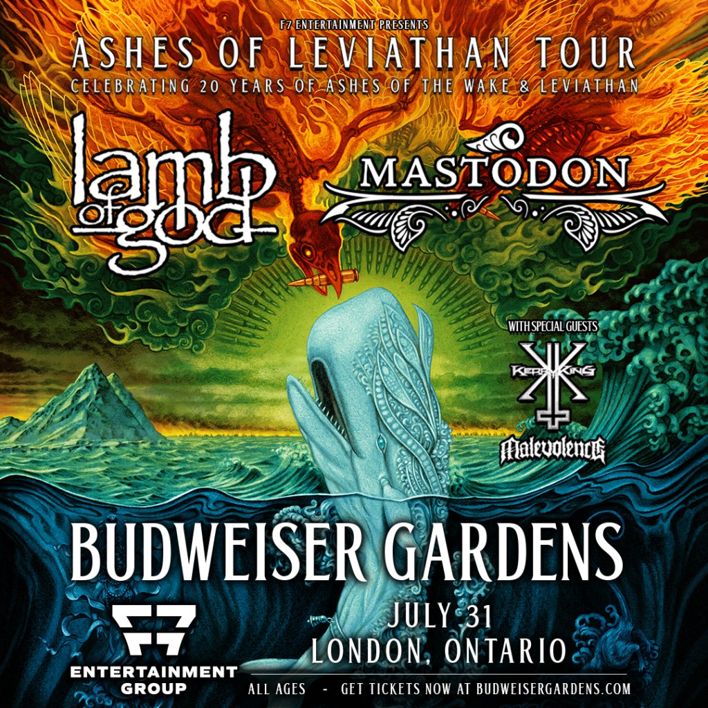 GRAMMY® Award-nominated metal titans Lamb of God and GRAMMY® Award-winning band Mastodon announce the co-headlining Ashes Of Leviathan Tour. The tour finds the two iconic bands join forces to celebrate the 20th anniversary of two seminal releases: Lamb of God’s biggest-selling album Ashes of the Wake and Mastodon’s acclaimed sophomore album Leviathan, which were both released on August 31, 2004. Both bands will perform their respective albums in full. Special guests Kerry King and Malevolence will support throughout the tour, with Unearth on select dates.