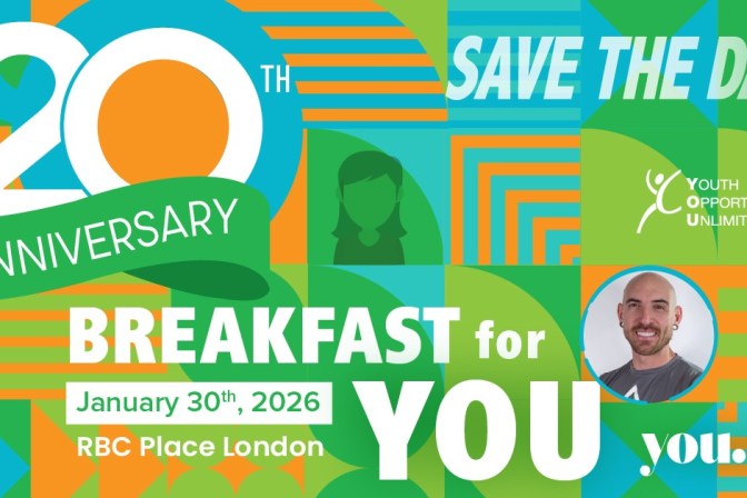 RBC Place, London 20th Annual Breakfast for YOU – January 30 at RBC Place London Youth Opportunities Unlimited is back with its 20th Annual Breakfast for YOU on Friday, January 30 at RBC Place London! Join 1,200 community leaders for a morning of connection, inspiration, and support for youth across London and Middlesex County. Enjoy a full buffet […]