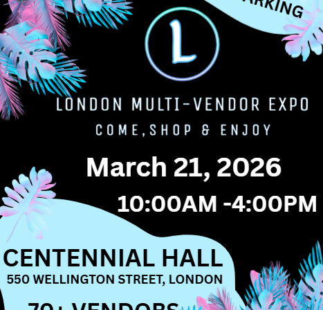Centennial Hall, 550 Wellington St, London, ON LONDON MULTI-VENDOR EXPO Centennial Hall Saturday, November 8, 2025 From 10 AM – 4 PM FREE Parking and Admission